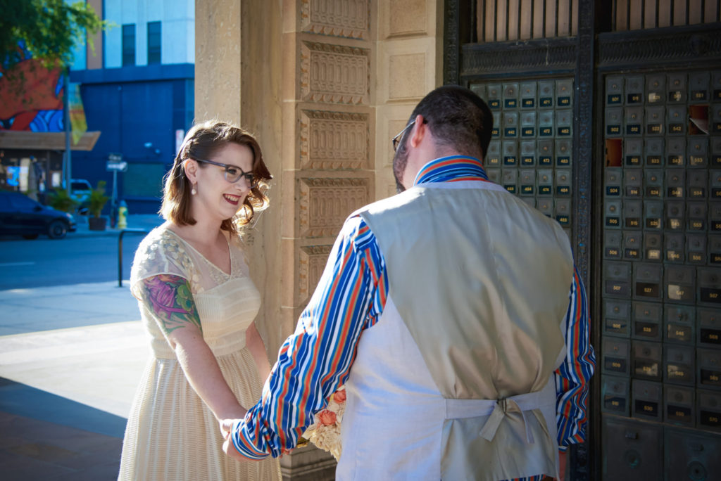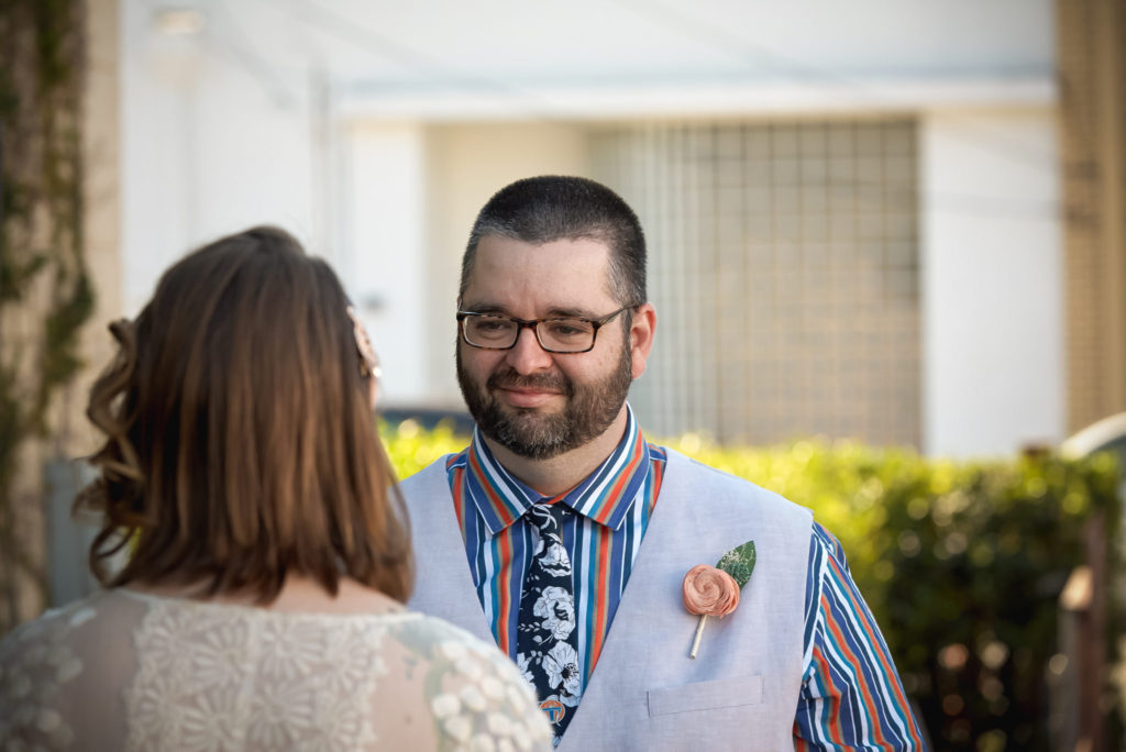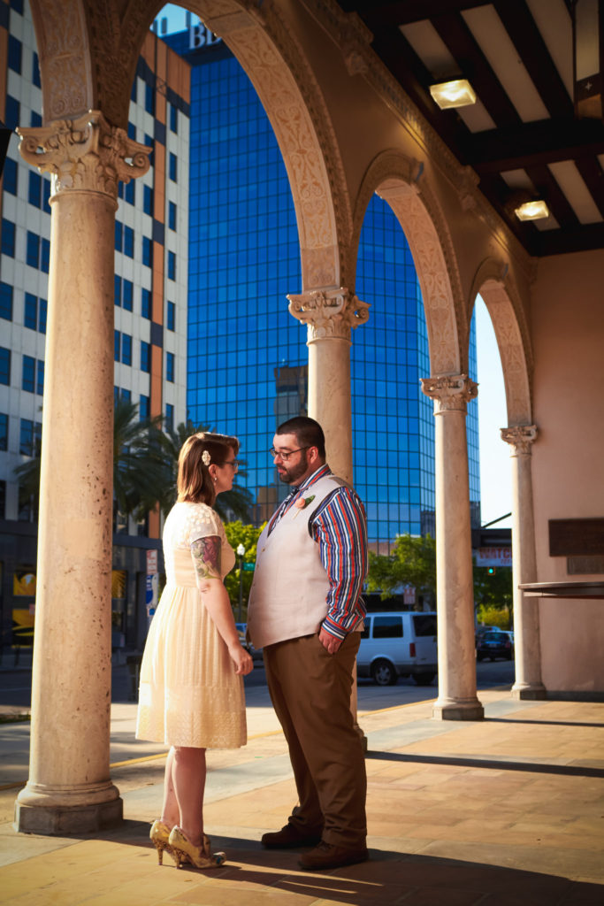 The day of the wedding came, and it was a beautiful spring day in St. Petersburg, Fl. Adam and Sara decided to do a first look at the beautiful Post Office building in St. Petersburg. As Adam turned around and saw Sara for the first time, on their wedding day, his smile became so large, I thought it must hurt. The first, of many, tears were shed there at the post office. I must admit, there had to be something in the air because I found a few tears on my cheeks as well.