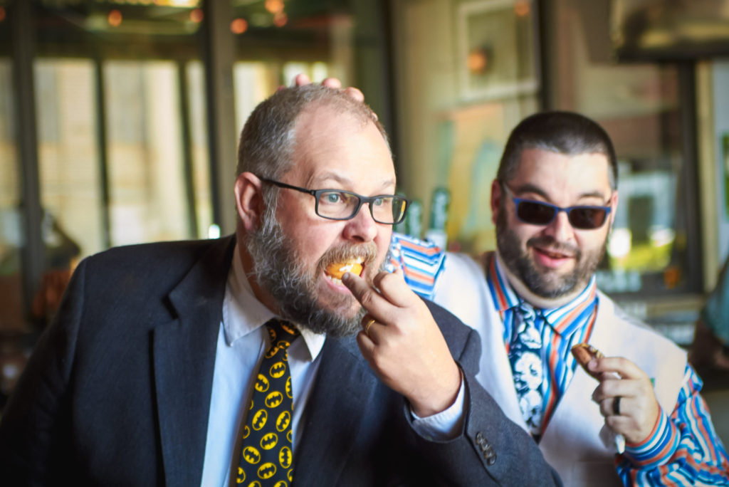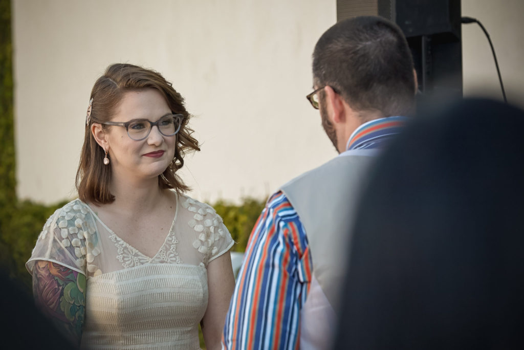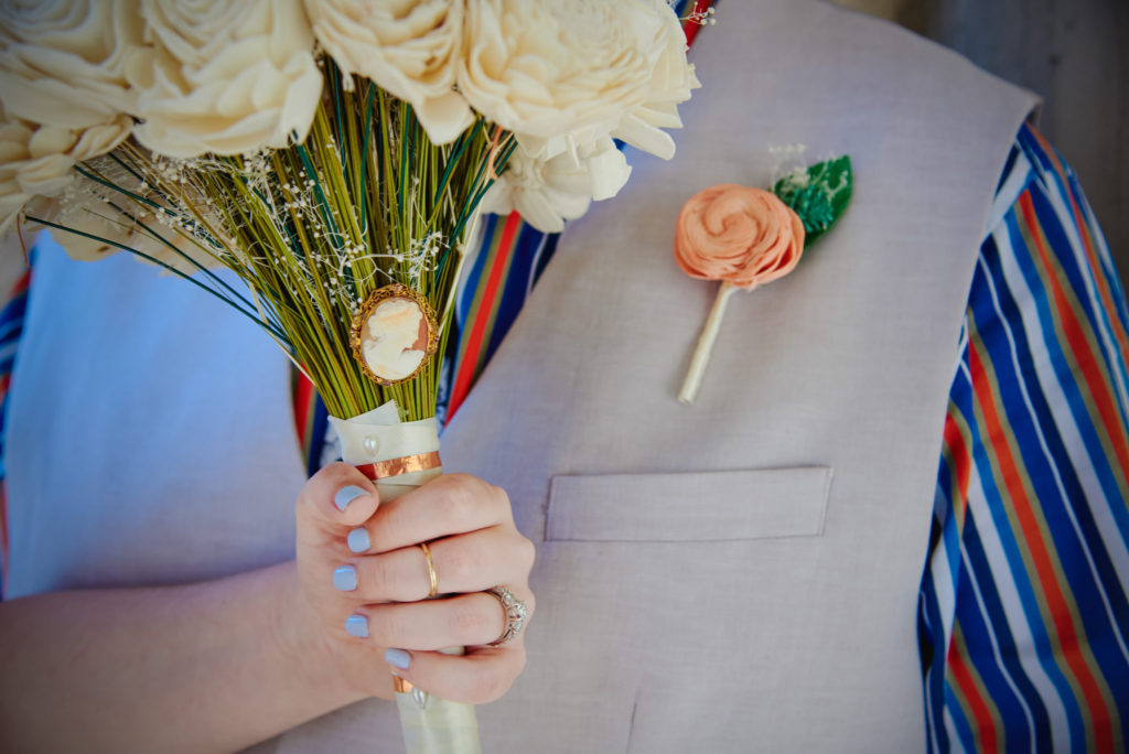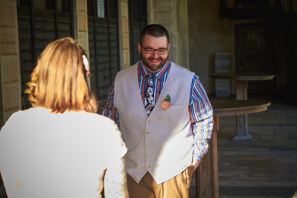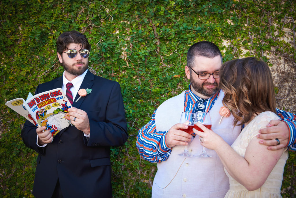 The officiant, Jim Reiman, performed the ceremony out of a Spider-Man comic. He also pulled an orange out of his suit and began preaching on “The Secrets of a Successful Wedding” from the immortal words of Homer Simpson. I know what you are wondering, “Who would do such a thing?” Well Jim and Adam are best friends and was also a student at USF at the time Adam and Sara met. If anyone would know the personalities of Sara and Adam, it would be Jim.